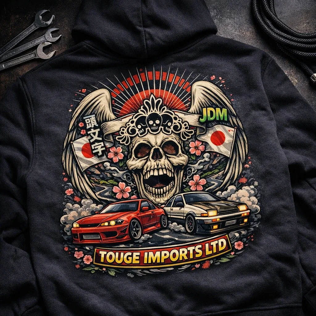 Touge Imports creates small‑batch apparel and accessories shaped by touge runs, drift nights, and the alt‑scene. A brand for people who live and breathe the culture — and for the vision we’re building next.